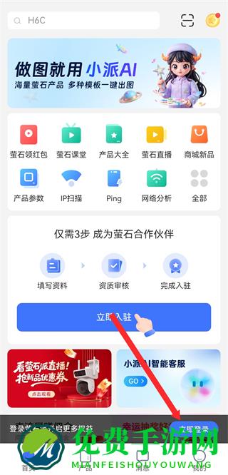 1、打开萤石派APP,点击我的,进入个人页面后点击立即登录。
