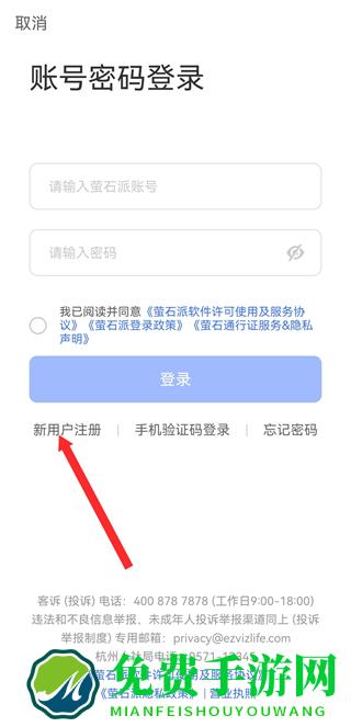 2、在账号密码的登录页面,我们需要点击新用户注册的选项。