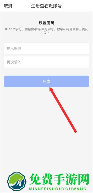 4、进入设置密码页面,设置密码后点击完成,完成注册操作。