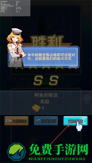 4、击沉敌方所有战舰后获得胜利,点击返回游戏继续挑战新对局。
