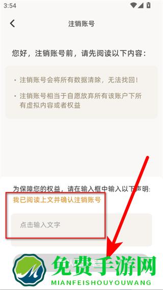 4、在注销账号页面,阅读相关提示后,在输入框中输入我已阅读上文并确认注销账号,然后点击确认注销账号按钮,即可完成账号注销。