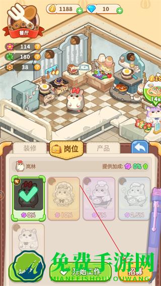 1、打开游戏进入餐厅店铺内部,点击右下角的岗位进行员工调整。