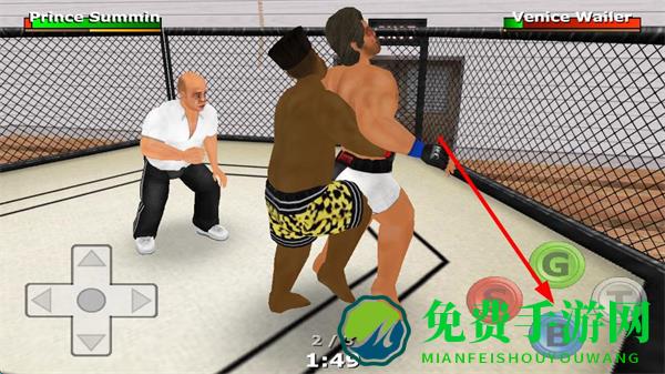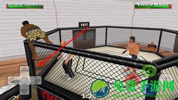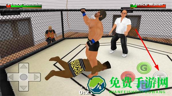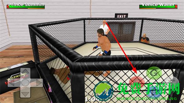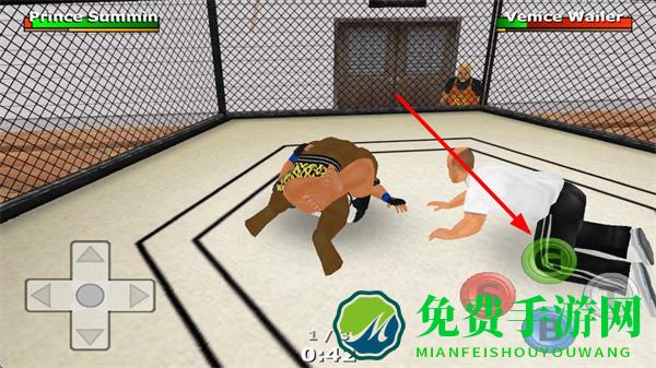 1、十字方向键控制摔跤手移动,可在铁笼内外自由行走,靠近对手、躲避攻击或利用铁笼边缘调整站位。