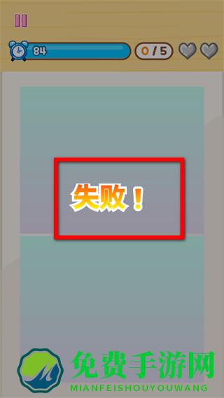 4、若在规定时间内未找全所有不同,会显示失败,可重新开始游戏。