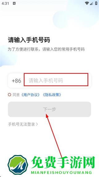 2、进入登录页面后,输入手机号码点击下一步。