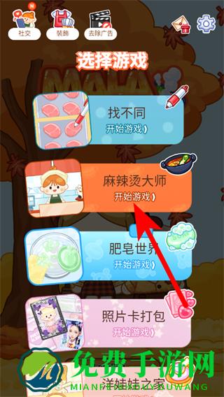 1、在游戏选择界面,点击麻辣烫大师的开始游戏按钮,进入游戏。