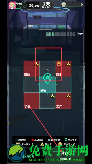2、在地图界面点击移动按钮,消耗行动点前往不同区域。