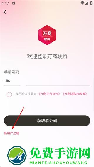 3、在登录页面,点击新用户注册选项,进入注册页面。