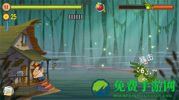 3、瞄准鳄鱼要害射击,触发暴击,快速削减其血量,积累更多分数。