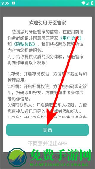 1、打开牙医管家,在欢迎弹窗中,点击同意。