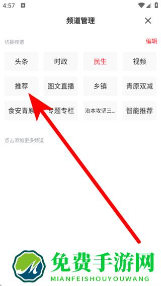 2、在频道管理中,点击推荐频道,进入页面。