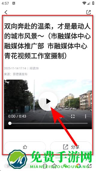 4、在内容详情页,点击播放按钮,观看视频。