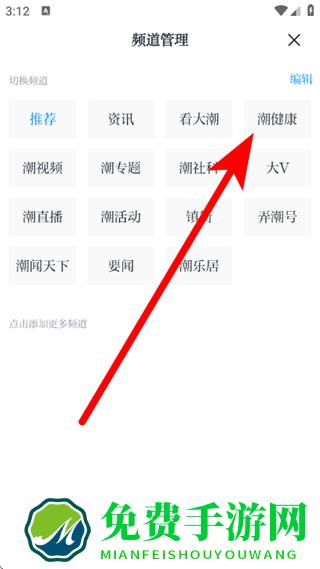 2、在频道管理页面,点击潮健康频道,进入潮健康页面。