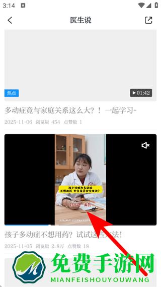 4、在医生说页面,点击选择感兴趣的健康视频观看。