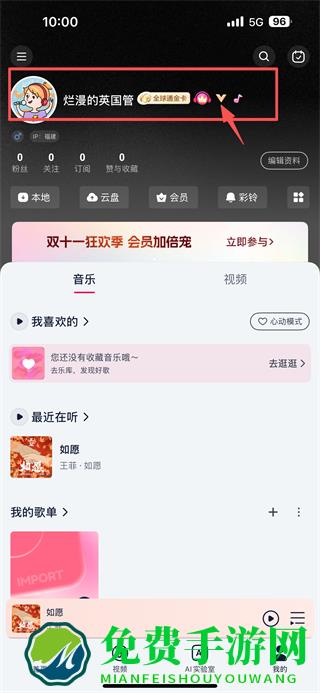 2、在个人中心,点击用户昵称区域,进入资料修改界面。