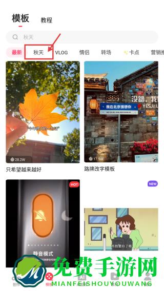2、在模板推荐页面,点击秋天分类,浏览秋天主题模板列表。