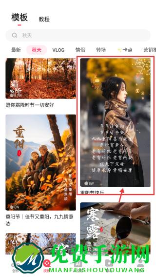 3、在秋天主题模板列表里,选择重阳节快乐模板条目,进入模板详情页。