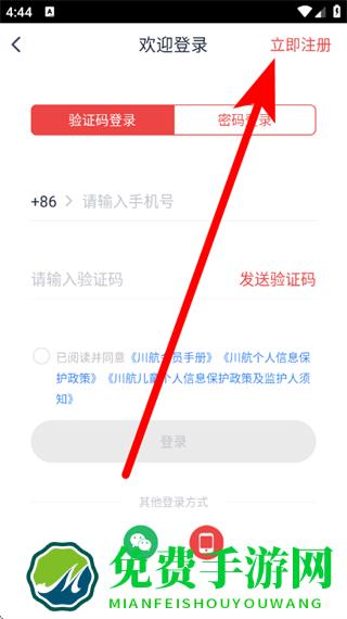 3、在登录页面,点击立即注册,进入注册页面。