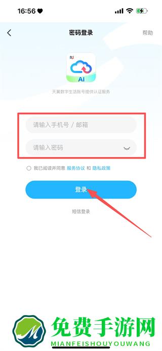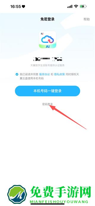2、在免密登录页面,点击密码登录,进入密码登录页面。