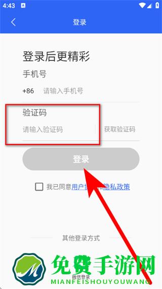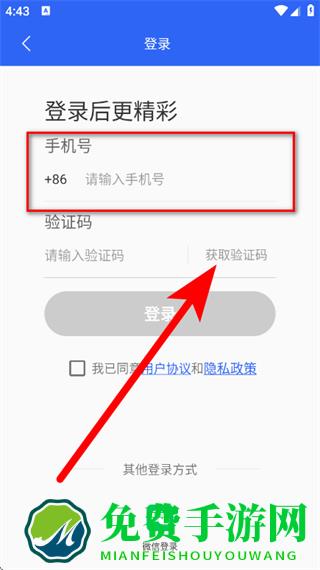 3、在登录页面,输入手机号后,点击获取验证码。