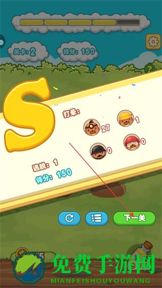 1、在关卡2中,及时点击钻出的地鼠,每次击中可获得分数,积累得分。