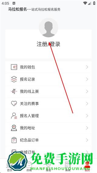 1、打开马拉松报名APP,点击底部导航栏我的选项。