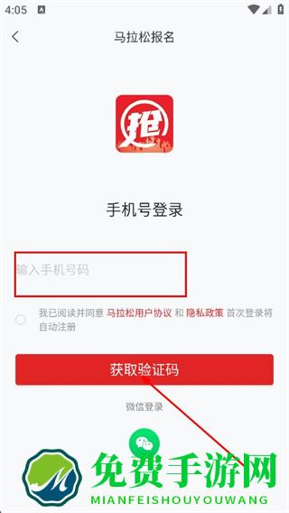 3、在手机号登录页面,输入手机号,并获取验证码。