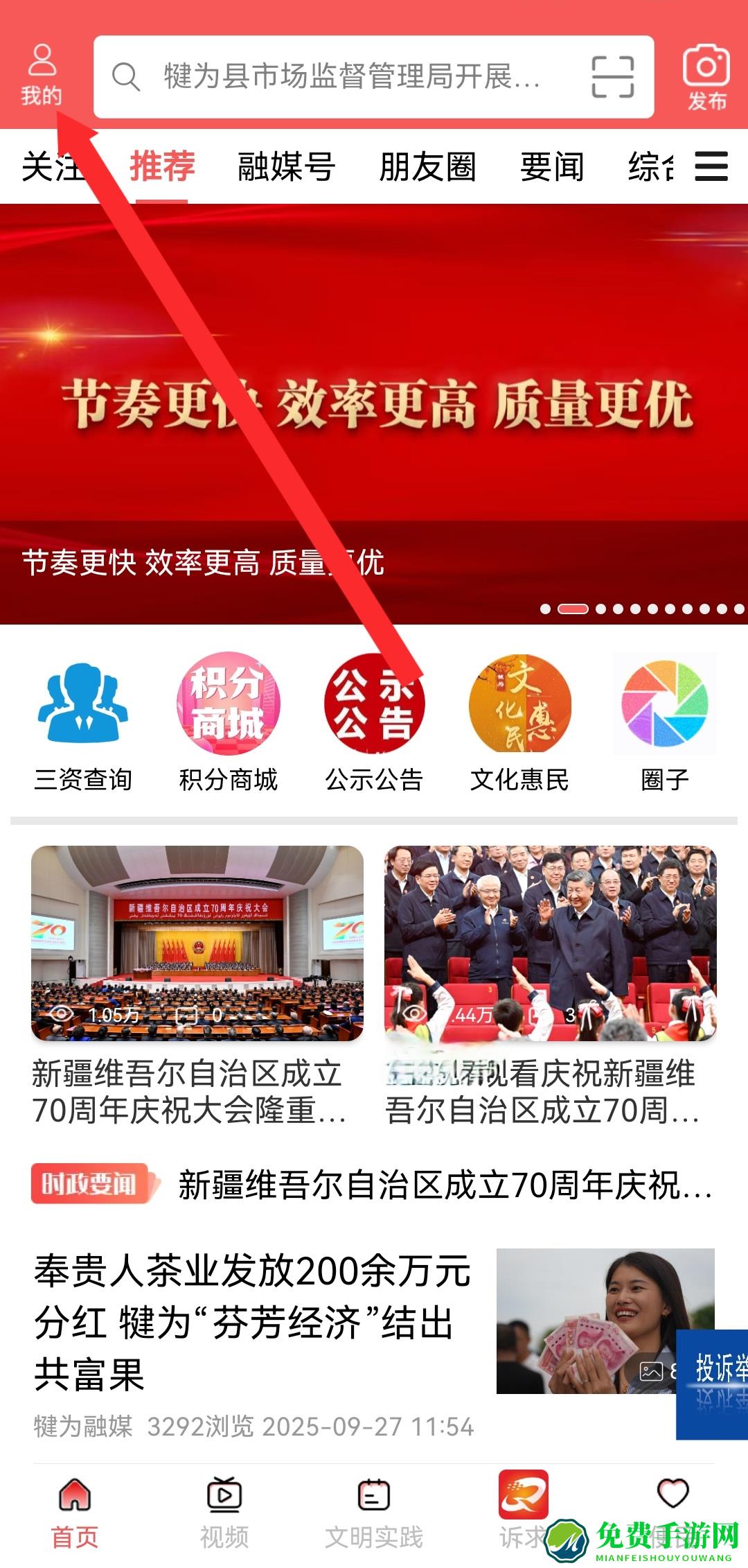 1、在掌上犍为的首页,需要点击左上角我的,进入个人的页面。