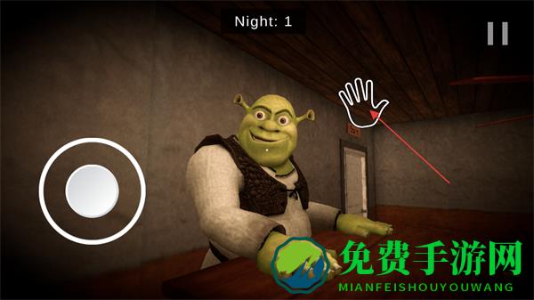 2、点击右侧手掌按键和绿色史莱克进行沟通对话了解游戏内容。