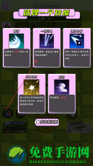 4、升级后选择技能如一触即电,增强战力,持续突围打怪。