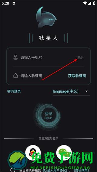 1、在用户协议与隐私政策弹窗中,点击同意,进入登录注册页面。