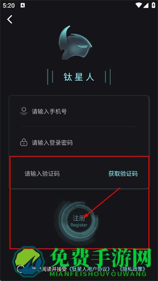 4、在验证码环节,点击获取验证码并输入,点击注册,完成账号注册操作。
