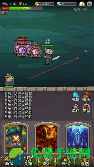 1、操控战士在黑锋丛林地图中自动战斗,攻击怪物获取经验和金币,向旗帜目标推进。