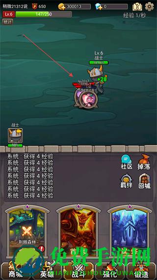 2、战士自动攻击怪物,每次攻击可获得经验如+28,积累经验提升等级。