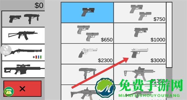 4、若想更换武器,可在武器列表中点击其他武器如价格为$3000的手枪进行选择。