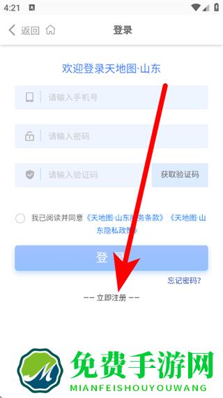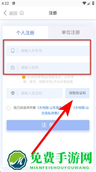 4、在注册页面,输入手机号、密码后,点击获取验证码。