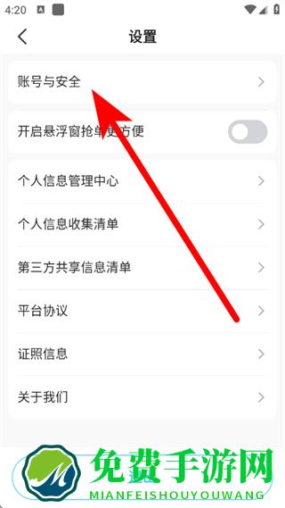 3、在设置页面,点击账号与安全,进入账号与安全页面。