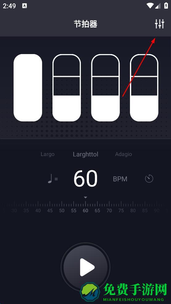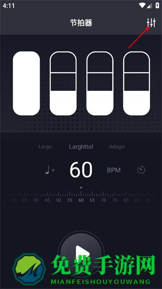 1、打开节拍器APP,点击右上角设置图标,进入设置界面。