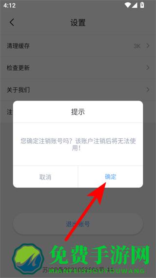 3、在设置界面里,点击注销账号选项,弹出注销确认提示框。