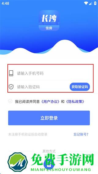 1、在长沙住房登录界面输入手机号码,点击获取验证码并输入验证码。