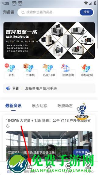 1、在淘备备首页,点击底部配件商城,进入配件商城页面。