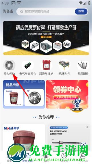 2、在配件商城页面,点击动力传动分类,进入对应商品列表页面。