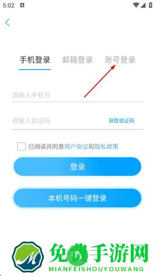3、在登录选择页面,点击账号登录,切换到账号密码登录界面。