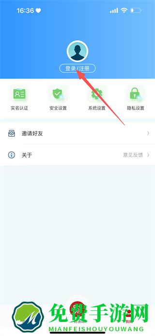 2、在个人中心页面,点击登录/注册,进入登录页面。