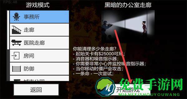 1、在进入到游戏模式选择页面中,点击选择第一个模式后点击开始游戏。