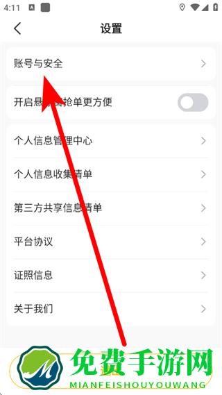 3、在设置页面,点击账号与安全,进入账号和安全页面。