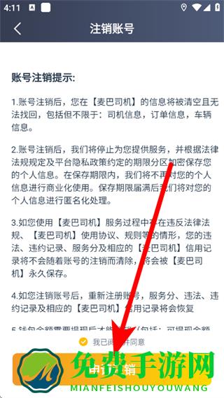 5、在注销页面,勾选后,点击申请注销,完成账号注销操作。