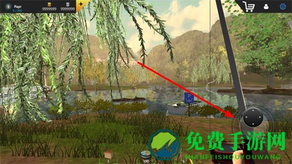 1、操控右侧旋钮调整鱼竿角度,选择合适的水域抛投钓饵,抛投前需观察水域环境,寻找鱼群聚集的区域,提升中鱼概率。