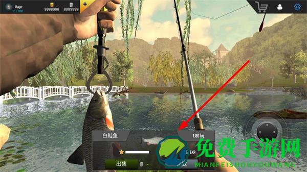 4、成功钓起鱼后可查看鱼的种类与重量,选择出售获取金币,用于购买更高级的钓饵、钓具,或释放鱼类积累垂钓经验。