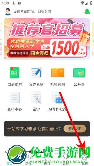 1、打开趴趴雅思APP,点击底部导航栏的我的选项,进入个人页面。